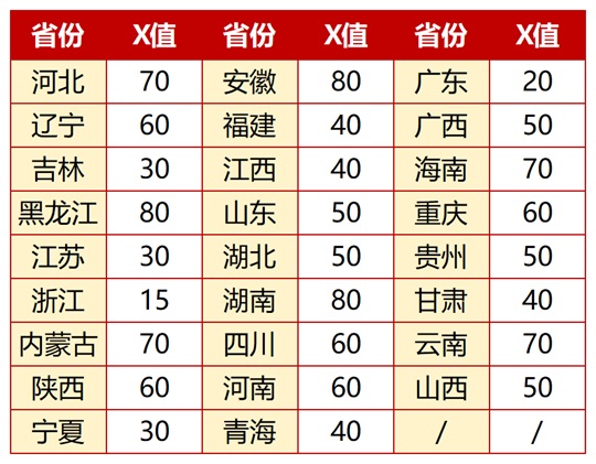 (三)我校將依據公布的高校專項計劃分省分專業招生計劃,按照考生高考投檔成績從高分到低分依次擇優錄取,同時根據我校招生章程規定的專業確定原則為考生分配專業。非高考綜合改革省份考生高考投檔成績(含政策性加分)須達考生生源地我校理科最終模擬投檔線(不含中外合作辦學相關專業,下同)下30分(含)之內,且不低于生源地本科第一批次錄取控制分數線(對于合并本科批次省份,要求為不低于省級招生考試主管部門劃定的特殊類型招生最低錄取控制參考分數線)。對實行高考綜合改革的省份,要求高考成績達到當地省級招生考試主管部門確定的特殊類型招生最低錄取控制參考分數線上X分及以上,具體X值如下表: