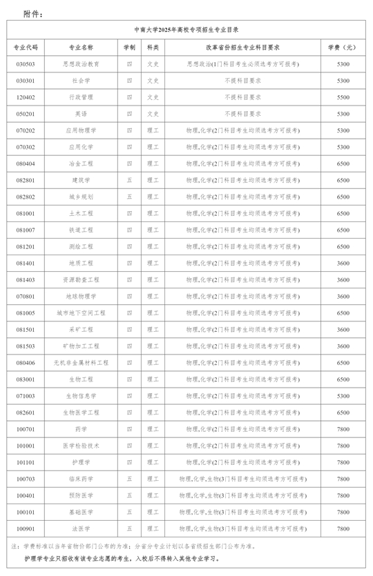 | 中南大學(xué)2025年高校招生專項計劃招生簡章 |