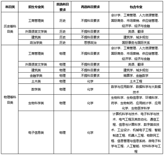 根據(jù)2025年江蘇省關(guān)于志愿填報與投檔錄取的政策要求,西交利物浦大學在江蘇省按照歷史等科目類和物理等科目類,共設(shè)置9個專業(yè)類供綜合評價招生志愿填報。招生專業(yè)類對應的科目類、選考科目要求和包含專業(yè)等信息請參見下表。外國語言文學類僅限外語語種為英語的考生填報。其他招生專業(yè)類外語語種不限。