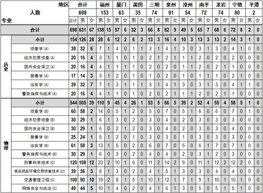 (2)報考司法警察類專業(yè)考生必須在福建報名并參加高考,戶籍不限,為高級中等教育學(xué)校畢業(yè)。