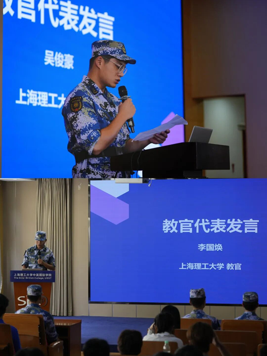肖雪怡與鄭雨舟老師向全體教官致以崇高敬意與誠摯感謝,著重強調了軍訓的時間安排與紀律規范,明確了軍訓期間的管理辦法和請假制度,鼓勵同學們以飽滿的熱情、昂揚的斗志和頑強的毅力投身軍訓,為大學生活打造精彩開端。