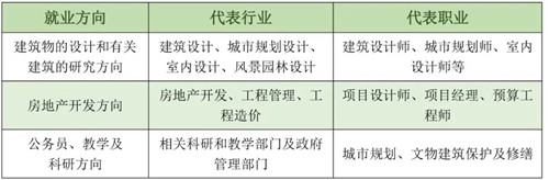 在目前基礎建設快速發展的時期,建筑行業專業人才的需求也較強,主要從三個方面來看:一是目前我國一線中心城市雖然建設比較快,但二三線城市和農村還是相對滯后的,這就給建筑行業提供了發展空間;二是城市老舊建筑的改造和拆除是城市更新的重要方式之一,在這方面,建筑學專業的畢業生可以有廣闊的施展舞臺;三是我國是一個文明古國,文物古建筑是寶貴的歷史文化遺產,需要投入大量的人力、物力來維護,這也需要相關人才的支撐。建筑學專業畢業生的就業情況詳見下表。